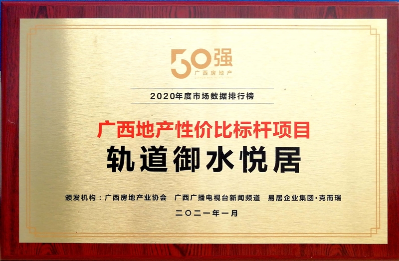 • 軌道御水悅居獲得廣西地產性價比標桿項目稱號