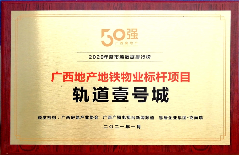 • 軌道壹號城獲得廣西地產地鐵物業(yè)標桿項目稱號