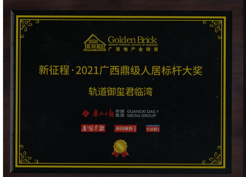 • 軌道御璽君臨灣項目獲得廣西地產金磚獎“新征程·2021廣西鼎級人居標桿大獎”