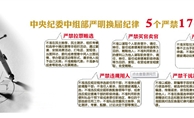 “5個(gè)嚴(yán)禁”“17”個(gè)不準(zhǔn)”和“5個(gè)一律” “5個(gè)嚴(yán)禁”: 嚴(yán)禁拉票賄選、嚴(yán)禁買(mǎi)官賣(mài)官、嚴(yán)禁跑官要官、嚴(yán)禁違規(guī)用人、嚴(yán)禁干擾換屆“17個(gè)不準(zhǔn)”: 1、不準(zhǔn)在民主推薦、民主測(cè)評(píng)、組織考察和選舉中搞拉票等非組織活動(dòng),通過(guò)宴請(qǐng)、安排消費(fèi)活動(dòng)、打電話(huà)、發(fā)短信、當(dāng)面拜訪、委托或者授意中間人出面說(shuō)情、舉辦聯(lián)誼活動(dòng)等形