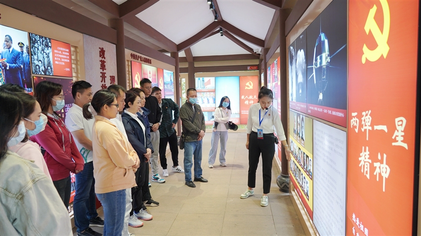 第一站,黨員干部們跟隨講解員依次參觀了中國共產(chǎn)黨人精神譜系主題園的“兩廳一廊一館”,講解員通過互動(dòng)點(diǎn)播屏、全息投影系統(tǒng)、虛擬翻書系統(tǒng)等聲光高科技設(shè)備,引導(dǎo)黨員干部們對(duì)新民主主義革命時(shí)期、社會(huì)主義革命建設(shè)時(shí)期、改革開放和社會(huì)主義現(xiàn)代化建新時(shí)期以及中國特色社會(huì)主義新時(shí)代所形成的系列偉大精神進(jìn)行了沉浸式學(xué)習(xí)。在講解員的介紹下,大家沿著百年黨史的時(shí)光長河溯流而上,仿佛回到歷史情境中,細(xì)細(xì)品讀著先輩們從千磨萬擊中錘煉而來的偉大精神,這些偉大的精神不斷叩擊著大家的心靈,讓人心潮澎湃、感慨萬千,從中汲取了不斷前進(jìn)的力量。
