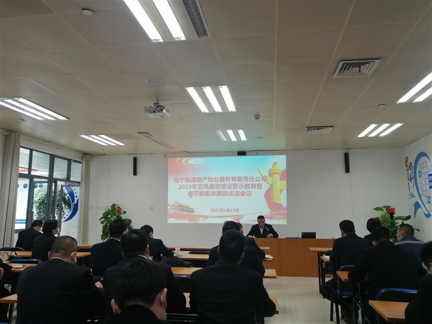 為深入學(xué)習(xí)貫徹黨的二十大及二十屆中央紀(jì)委二次全會(huì)會(huì)議精神,推進(jìn)公司全面從嚴(yán)治黨和黨風(fēng)廉政建設(shè)工作,增強(qiáng)全體黨員干部的廉潔自律意識,營造風(fēng)清氣正的廉潔過節(jié)氛圍,2023年1月17日南寧軌道地產(chǎn)物業(yè)公司黨支部在東站樞紐培訓(xùn)室召開2023年黨風(fēng)廉政建設(shè)警示教育暨春節(jié)前集體廉潔談話,公司全體黨員、入黨積極分子、中層管理人員共47人參加了此次會(huì)議。