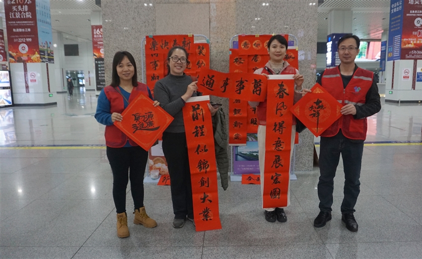 1月23日上午,軌道地產建筑公司黨支部與南湖街道屯里社區(qū)黨總支攜手,在南寧火車東站南廣場開展一場別開生面的送春聯、贈福字活動。社區(qū)黨員與企業(yè)黨員志愿者積極參與,為奔波在春運途中的人們送去滿滿溫暖與新春祝福。