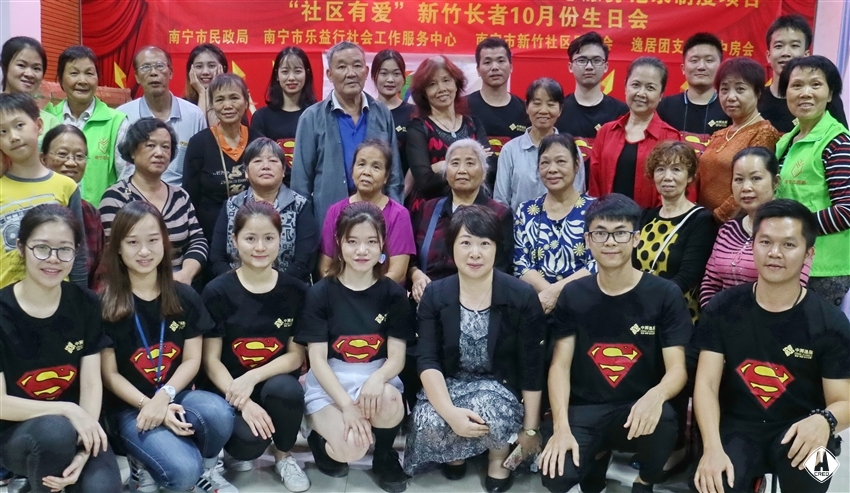 "祝你生日快樂!祝你生日快樂!" 祝福的歌聲和掌聲不斷響起來。2017 11 1 日下午,在青秀區(qū)新竹社區(qū),十幾個(gè)老人聚在社區(qū)的一間活動(dòng)室里,參加 "社區(qū)有愛"新竹社區(qū)長(zhǎng)者 10 月份生日會(huì),一起慶祝生日。本次關(guān)愛社區(qū)老人公益活動(dòng)由南寧市樂益行社會(huì)工作服務(wù)中心、新竹社區(qū)居委會(huì)和逸居公司團(tuán)支部、中房會(huì)等聯(lián)合舉辦。