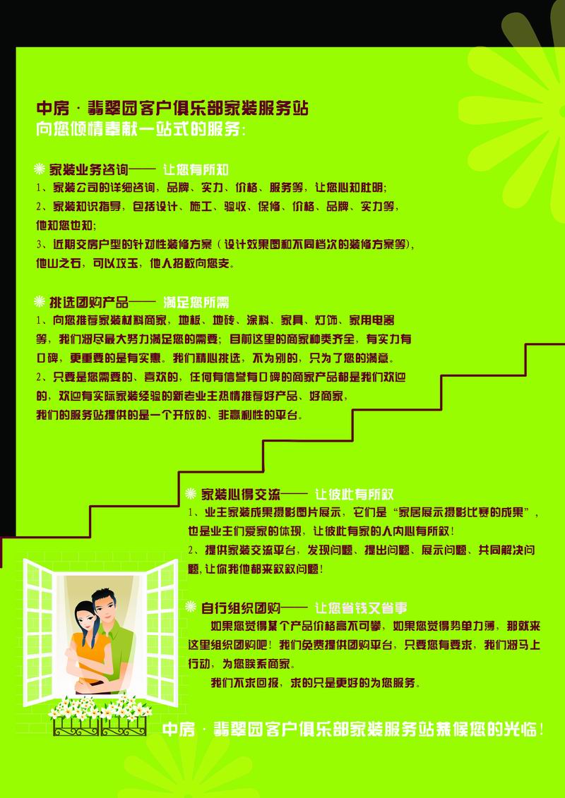 中房•翡翠園客戶俱樂部家裝服務(wù)站11月22日正式啟動