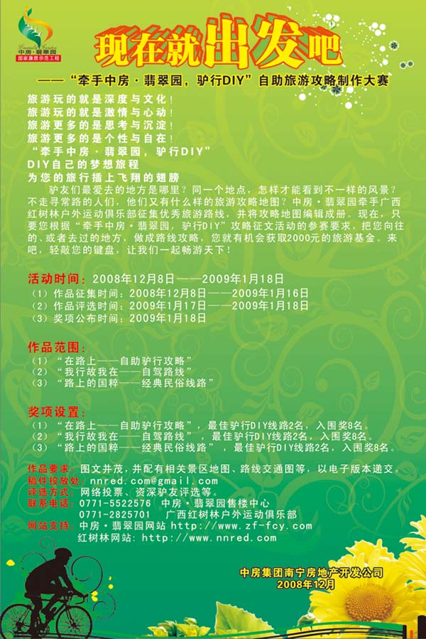 現(xiàn)在,只要您根據(jù)“牽手中房·翡翠園,驢行DIY”攻略征文活動(dòng)的參賽要求,把您向往的、或者去過(guò)的地方,做成路線攻略,您就有機(jī)會(huì)獲取2000元的現(xiàn)金大獎(jiǎng)。來(lái)吧,輕敲您的鍵盤,讓我們一起暢游天下!